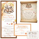 Various wedding invite designs, including Save-the-Dates, envelopes, RVSP cards.